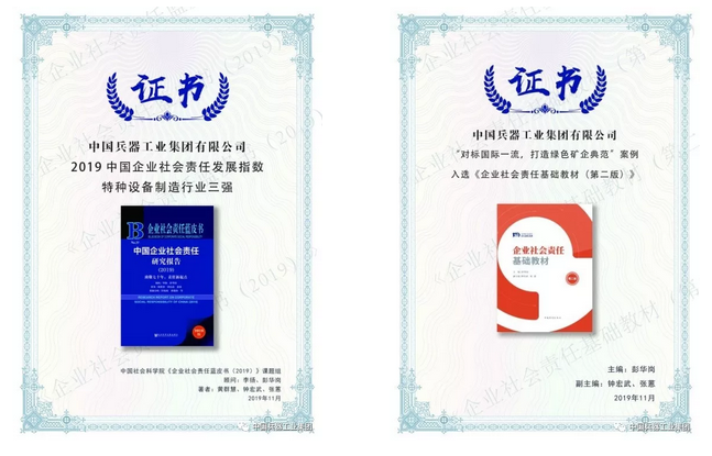 在《企業(yè)社會責任藍皮書(2019)》中,集團公司社會責任發(fā)展指數繼續(xù)領跑軍工行業(yè),位列特種設備制造首位。集團公司緬甸蒙育瓦銅礦項目《對標國際一流,打造綠色礦企典范》以及西安兵器基地《探索和實踐“軍工+地方”合作共建,國家一流科技產業(yè)園區(qū)發(fā)展模式》案例入選《企業(yè)社會責任基礎教材案例集》,展示了集團公司在環(huán)境責任和產業(yè)帶動等方面的履責成效。(社會責任部)   |