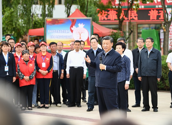 習(xí)近平總書記8日赴寧夏考察調(diào)研。當(dāng)天下午,他先后來到吳忠市紅寺堡鎮(zhèn)弘德村、黃河吳忠市城區(qū)段、金星鎮(zhèn)金花園社區(qū),了解當(dāng)?shù)赝七M(jìn)脫貧攻堅(jiān)、加強(qiáng)黃河流域生態(tài)保護(hù)、促進(jìn)民族團(tuán)結(jié)等情況。(攝影:新華社記者 鞠鵬 謝環(huán)馳 王曄 燕雁) |