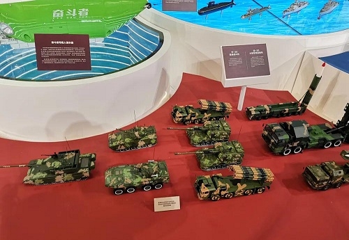 ▲我國自主研制的主戰(zhàn)坦克、輪式步兵戰(zhàn)車和遠(yuǎn)程火箭炮等陸軍主戰(zhàn)裝備 | ||
