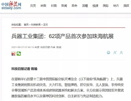 兵器工業(yè)集團(tuán)參展第十三屆中國(guó)航展受到社會(huì)廣泛關(guān)注 |