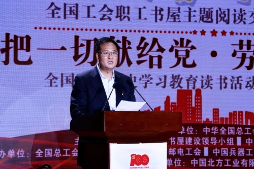 活動由全總宣教部、中國國防郵電工會、中國兵器工業(yè)集團有限公司黨群工作部、中國工人出版社共同承辦,中國北方工業(yè)有限公司協(xié)辦。來自中華全國總工會、全國工會職工書屋建設領導小組成員、部分全國工會職工書屋公益代言人,各全國產(chǎn)業(yè)工會、全總各部門負責同志,部分省市總工會副主席、宣教部長,兵器工業(yè)集團一線勞模工匠、職工代表等參加活動。 | ||