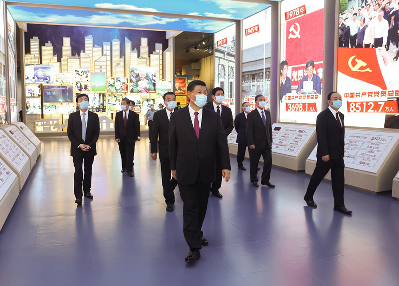 新近落成的中國共產(chǎn)黨歷史展覽館巍然矗立,氣勢恢宏。下午3時20分許,習(xí)近平等黨和國家領(lǐng)導(dǎo)同志來到這里,步入展廳參觀展覽。展覽以“不忘初心、牢記使命”為主題,精心設(shè)計了“建立中國共產(chǎn)黨 奪取新民主主義革命偉大勝利”、“成立中華人民共和國 進(jìn)行社會主義革命和建設(shè)”、“實(shí)行改革開放 開創(chuàng)和發(fā)展中國特色社會主義”、“推進(jìn)中國特色社會主義進(jìn)入新時代 全面建成小康社會 開啟全面建設(shè)社會主義現(xiàn)代化國家新(人民日報)征程”4個部分,通過2600余幅圖片、3500多件套文物實(shí)物,第一次全方位、全過程、全景式、史詩般展現(xiàn)中國共產(chǎn)黨波瀾壯闊的百年歷程,濃墨重彩地反映黨的不懈奮斗史、不怕犧牲史、理論探索史、為民造福史、自身建設(shè)史,使人們深刻認(rèn)識到紅色政權(quán)來之不易、新中國來之不易、中國特色社會主義來之不易,深刻認(rèn)識到中國共產(chǎn)黨為什么能、馬克思主義為什么行、中國特色社會主義為什么好。