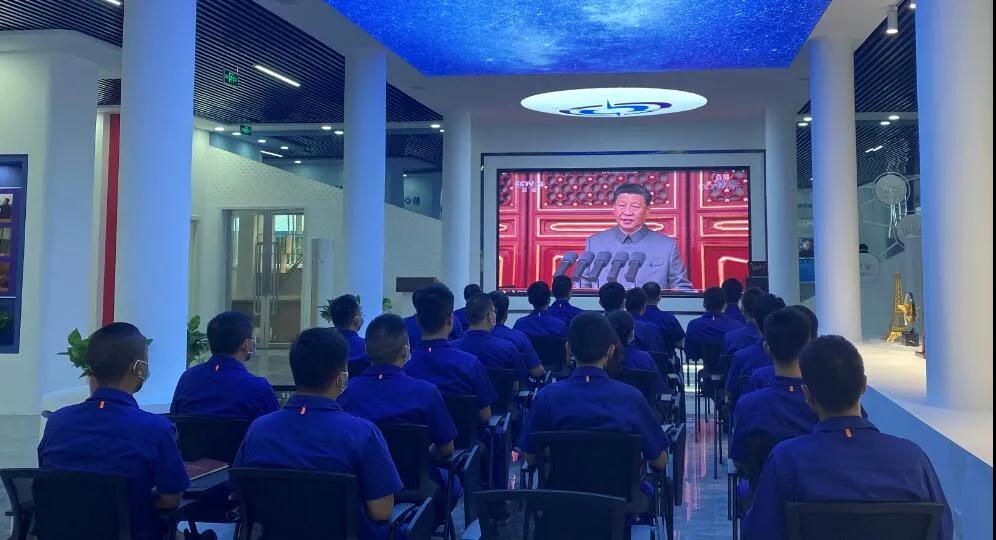集團公司總經理、黨組副書記劉大山,黨組副書記周艦,黨組成員、總會計師張華,紀檢監(jiān)察組組長、黨組成員陳學釧,黨組成員、副總經理鄒文超,黨組成員、副總經理植玉林帶領總部全體職工觀看慶祝大會,各單位組織機關干部、科研人員、車間工人等通過集中收看、電視、電腦、手機網絡等方式觀看慶祝大會。