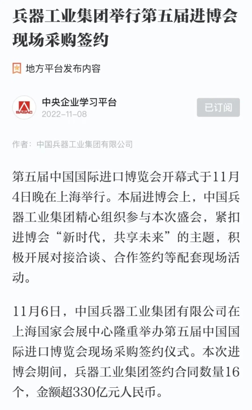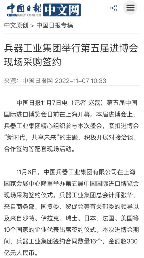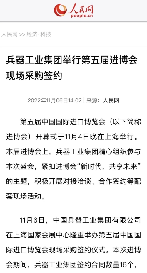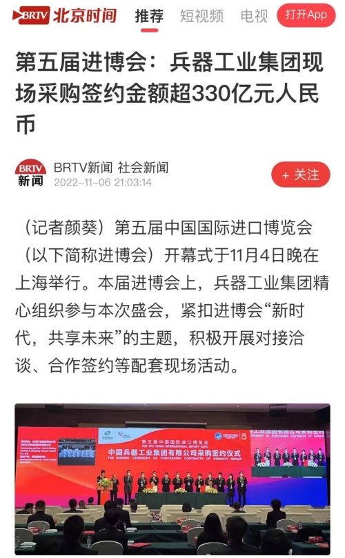| 兵器工業(yè)集團(tuán)第五屆進(jìn)博會(huì)成果受到廣泛關(guān)注 | ||