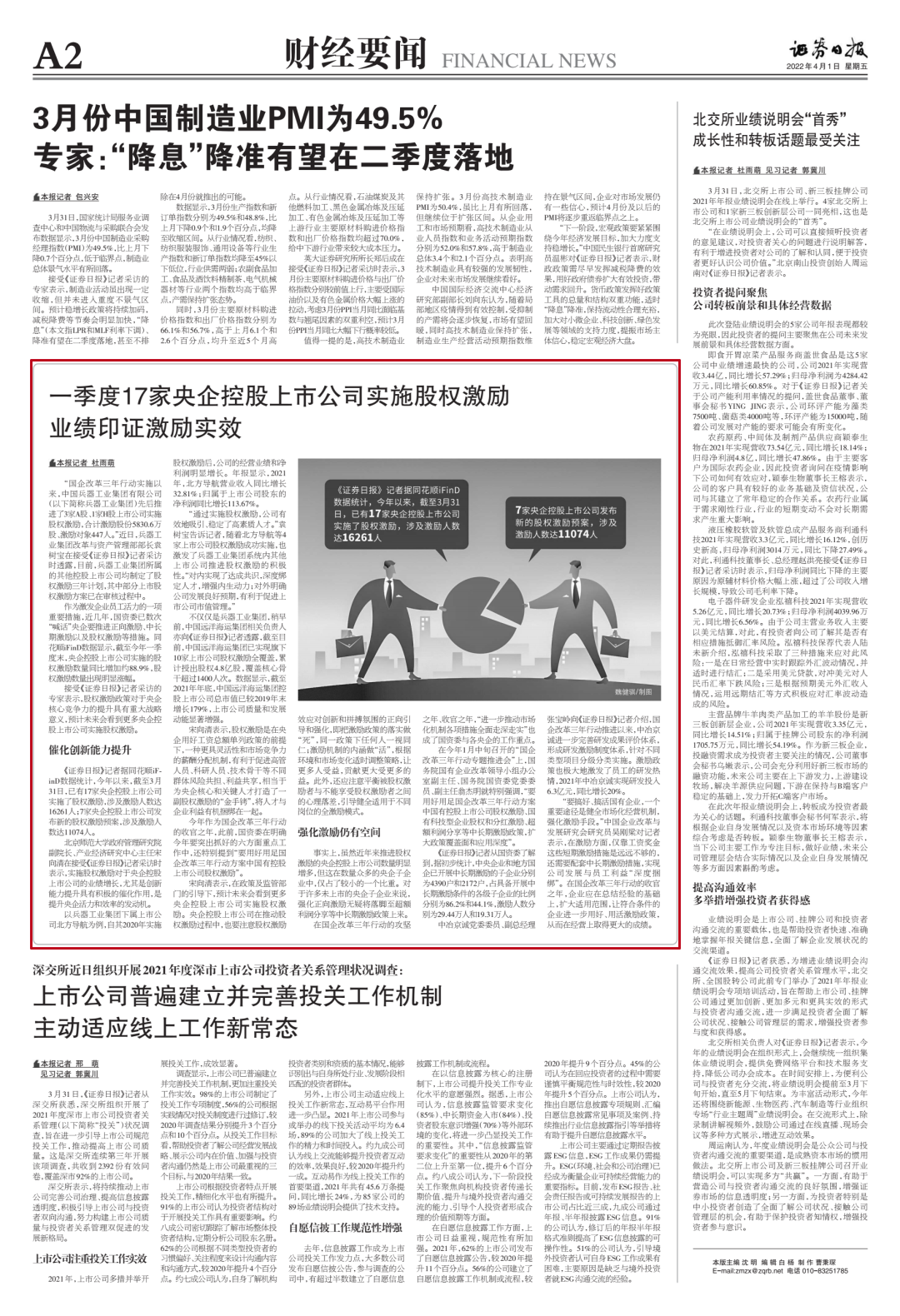 | 近日,中國(guó)兵器工業(yè)集團(tuán)有限公司國(guó)企改革三年行動(dòng)的經(jīng)驗(yàn)做法和工作成效引發(fā)媒體廣泛關(guān)注。中國(guó)新聞社、中國(guó)網(wǎng)、工人日?qǐng)?bào)客戶端、光明日?qǐng)?bào)客戶端、新華財(cái)經(jīng)、國(guó)資報(bào)告、人民網(wǎng)、國(guó)資委網(wǎng)站、人民政協(xié)網(wǎng)、《證券日?qǐng)?bào)》、學(xué)習(xí)強(qiáng)國(guó)平臺(tái)、央廣經(jīng)濟(jì)之聲、第一財(cái)經(jīng)客戶端、新華社、《經(jīng)濟(jì)參考報(bào)》、海外網(wǎng)、中工網(wǎng)、騰訊網(wǎng)、新浪網(wǎng)、搜狐網(wǎng)、網(wǎng)易網(wǎng)等中央主流媒體、國(guó)家部委網(wǎng)站及知名網(wǎng)絡(luò)媒體對(duì)集團(tuán)公司國(guó)企改革三年行動(dòng)情況進(jìn)行了刊載報(bào)道。 中國(guó)新聞社:兵器工業(yè)集團(tuán):國(guó)企改革三年行動(dòng)156項(xiàng)改革舉措2021年底已完成90%以上 中國(guó)網(wǎng):兵器工業(yè)集團(tuán)“四個(gè)堅(jiān)持”促改革 成效顯著 中國(guó)網(wǎng):兵器工業(yè)集團(tuán)體系化推進(jìn)民品發(fā)展戰(zhàn)略 布局17個(gè)重點(diǎn)產(chǎn)業(yè)領(lǐng)域 工人日?qǐng)?bào)客戶端:兵器工業(yè)集團(tuán)國(guó)企改革三年行動(dòng)取得顯著成效 光明日?qǐng)?bào)客戶端:兵器工業(yè)集團(tuán)國(guó)企改革三年行動(dòng)成效顯著 新華財(cái)經(jīng):兵器工業(yè)集團(tuán)三年行動(dòng)見(jiàn)實(shí)效 國(guó)資報(bào)告:聚焦高水平自立自強(qiáng),兵器工業(yè)集團(tuán)深化體制機(jī)制變革成效顯著 人民網(wǎng):“國(guó)企改革三年行動(dòng)”系列報(bào)道——三項(xiàng)制度改革進(jìn)一步走深走實(shí) 國(guó)有企業(yè)活力動(dòng)力明顯增強(qiáng) 國(guó)資委網(wǎng)站:【對(duì)標(biāo)世界一流 央企加速奔跑】兵器工業(yè)集團(tuán)國(guó)企改革三年行動(dòng)成效顯著 人民政協(xié)網(wǎng):兵器工業(yè)集團(tuán)改革舉措走深走實(shí) 創(chuàng)新激發(fā)企業(yè)活力 《證券日?qǐng)?bào)》:一季度17家央企控股上市公司實(shí)施股權(quán)激勵(lì) 業(yè)績(jī)印證激勵(lì)實(shí)效 學(xué)習(xí)強(qiáng)國(guó)平臺(tái):兵器工業(yè)集團(tuán)國(guó)企改革三年行動(dòng)成效顯著 第一財(cái)經(jīng)客戶端:國(guó)企改革三年行動(dòng)攻堅(jiān)沖刺,中長(zhǎng)期激勵(lì)有望深層次突破 新華社、《經(jīng)濟(jì)參考報(bào)》:國(guó)企改革三年行動(dòng)迎考 混改上市動(dòng)作頻頻 中長(zhǎng)期激勵(lì)擴(kuò)圍升級(jí) 《證券日?qǐng)?bào)》:年內(nèi)8家國(guó)有控股公司登陸A股 39家排隊(duì)中 《經(jīng)濟(jì)參考報(bào)》:兵器工業(yè)集團(tuán):用改革點(diǎn)燃創(chuàng)新引擎 | ||