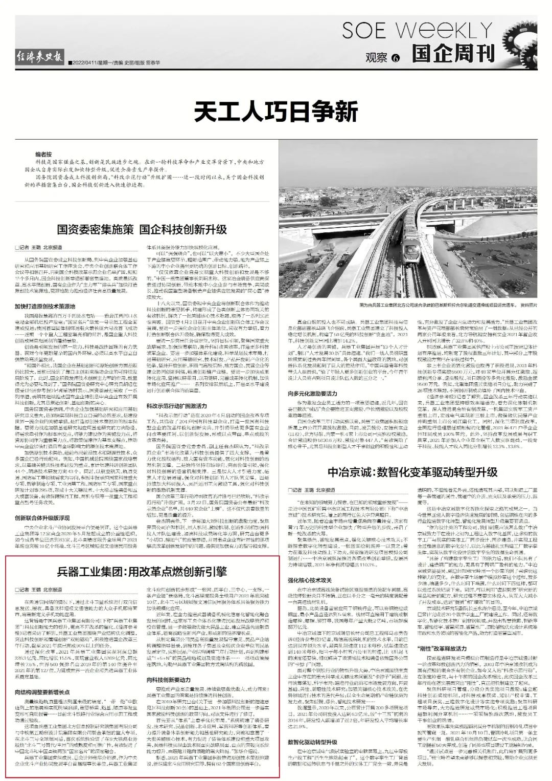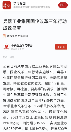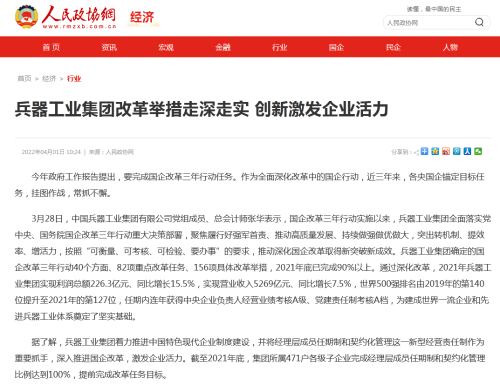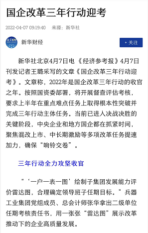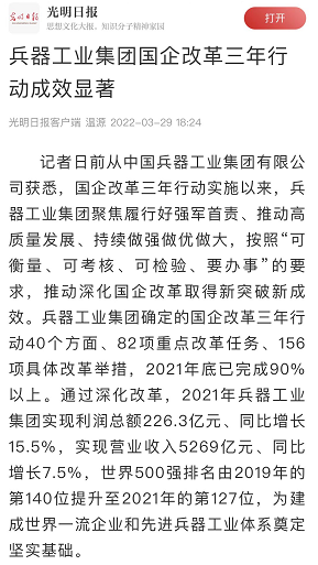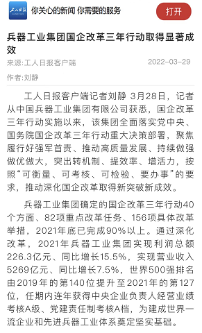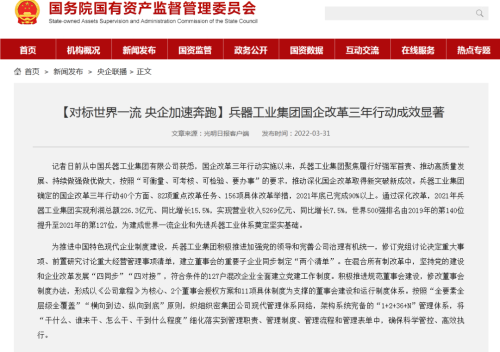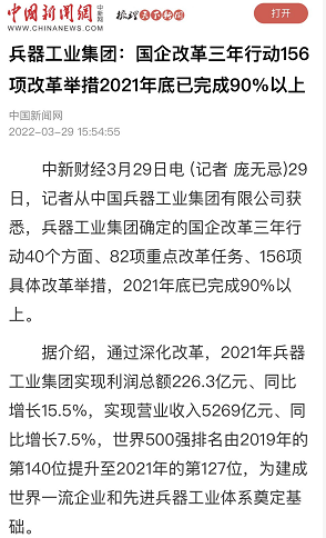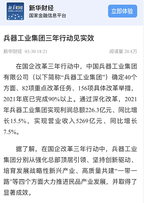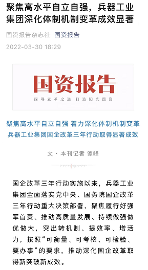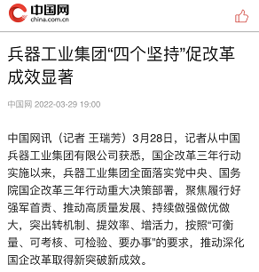 | 兵器工業(yè)集團(tuán)國(guó)企改革三年行動(dòng)工作成效引發(fā)廣泛關(guān)注丨國(guó)企改革看兵器 | ||