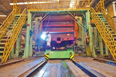 |   中國(guó)兵器工業(yè)集團(tuán)一機(jī)集團(tuán)北方創(chuàng)業(yè)公司生產(chǎn)線開足馬力生產(chǎn)鐵路車輛產(chǎn)品。日前,為圓滿完成1200臺(tái)C70E(H)型通用敞車生產(chǎn)任務(wù),該公司不斷創(chuàng)新生產(chǎn)組織模式,新、舊兩條生產(chǎn)線全面啟動(dòng),白、夜班雙班組織生產(chǎn),有效保障生產(chǎn)進(jìn)度。(王磊 攝) | ||