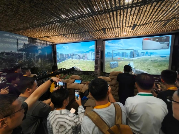 本屆航展,兵器工業(yè)集團(tuán)著重展示數(shù)智賦能軍貿(mào)合成旅作戰(zhàn)體系?!疤金^”現(xiàn)場,新聞發(fā)言人向記者團(tuán)介紹了本屆航展集團(tuán)公司參展亮點(diǎn)、明星產(chǎn)品和技術(shù)發(fā)展成果,并對(duì)VT5-U輕型坦克、VU-T10無人平臺(tái)、SR5多管火箭炮、金雕CR500B無人直升機(jī)系統(tǒng)、指揮控制中心等參展裝備和技術(shù)作了重點(diǎn)介紹,媒體記者進(jìn)一步了解了裝備的性能和特點(diǎn)。在無人火力展區(qū),記者團(tuán)還走進(jìn)仿真訓(xùn)練體驗(yàn)區(qū),親身“使用”單兵武器,體驗(yàn)裝備性能。