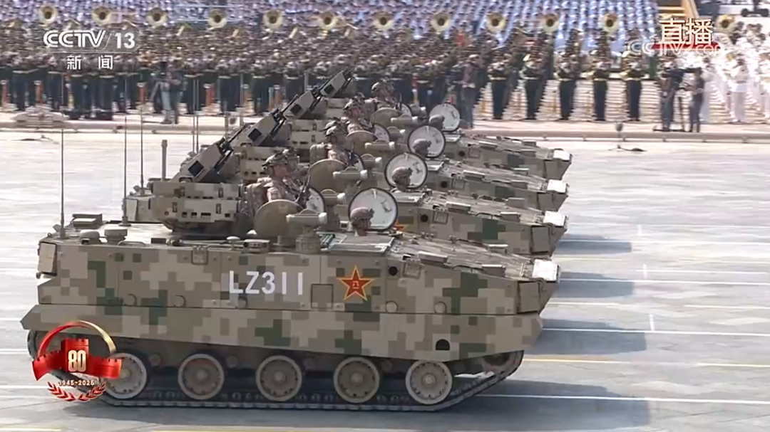 9月3日,紀(jì)念中國人民抗日戰(zhàn)爭暨世界反法西斯戰(zhàn)爭勝利80周年閱兵儀式在天安門廣場隆重舉行,中共中央總書記、國家主席、中央軍委主席習(xí)近平發(fā)表重要講話并檢閱部隊。 中國兵器工業(yè)集團(tuán)有限公司研制生產(chǎn)的眾多武器裝備與受閱部隊一道,氣勢如虹通過天安門廣場,接受黨和人民的檢閱。這次閱兵規(guī)模盛大、恢弘壯觀,是以習(xí)近平同志為核心的黨中央,團(tuán)結(jié)帶領(lǐng)全黨全軍全國各族人民,全面推進(jìn)中國式現(xiàn)代化進(jìn)入新征程的首次閱兵,是2019年國慶大閱兵后我軍新一代武器裝備的集中亮相。 中國兵器企事業(yè)單位研制生產(chǎn)的15型整機裝備、11型輕武器、單兵綜合系統(tǒng)和迎賓禮炮及禮炮彈、表演機用固體彩色發(fā)煙彈等30余型裝備、產(chǎn)品,分布在徒步方隊、裝備方隊、空中梯隊。 輕武器和單兵綜合系統(tǒng),覆蓋以徒步方隊為主的幾乎所有受閱方隊,整機裝備主要集中在裝備方隊的陸上作戰(zhàn)群、防空反導(dǎo)群、信息作戰(zhàn)群、無人作戰(zhàn)群、后裝保障群等編組的多個整編方隊和混編方隊,全面展示了中國兵器近年來服務(wù)強軍勝戰(zhàn)加快科技自立自強的最新成果。 “國之禮器”:鳴響閱兵“第一響” 56門迎賓禮炮交替鳴放80響,鳴放時聲音渾厚、洪亮、穩(wěn)定,作用可靠、使用安全、節(jié)能環(huán)保,以大氣外觀與優(yōu)越性能詮釋“國之禮器”的威嚴(yán)風(fēng)范。 徒步方隊 此次閱兵,由中國兵器研制生產(chǎn)的輕武器產(chǎn)品用量達(dá)數(shù)千支,徒步方隊的受閱官兵整齊劃一配戴中國兵器研制生產(chǎn)的輕武器、單兵綜合系統(tǒng),邁著鏗鏘有力的步伐展示人民軍隊的威武雄姿。 191型自動步槍、192型短自動步槍適應(yīng)現(xiàn)代戰(zhàn)爭對武器輕量化、多功能、模塊化的需求,具有高精度、高可靠性、高安全性、高舒適性、高系統(tǒng)性、長壽命的特點,適應(yīng)全天時、全天候、全地域綜合作戰(zhàn),各項指標(biāo)達(dá)到世界先進(jìn)水平。 單兵綜合系統(tǒng)是以士兵為平臺、信息為主導(dǎo)、火力為核心、保障為基礎(chǔ)的綜合系統(tǒng),實現(xiàn)偵察探測、信息通聯(lián)、指揮控制、打擊毀傷、偽裝防護(hù)、攜行機動和維持保障等能力的有機統(tǒng)一,使單兵作為信息化戰(zhàn)爭的末端節(jié)點,全面提升單兵及班組的火力打擊能力。 裝備方隊之陸上作戰(zhàn)群 ◎地面突擊方隊:“陸戰(zhàn)之王”領(lǐng)銜駛過 作為陸軍地面突擊力量的新一代裝甲裝備,受閱的99B坦克、100坦克、100支援戰(zhàn)車,呈箭型走在地面裝備方隊的最前列、頭陣領(lǐng)銜駛過,盡顯機動奪要、攻堅突破的強大戰(zhàn)力,是我軍高技術(shù)裝備體系的重要組成部分。 99B坦克在99A坦克的基礎(chǔ)上通過技術(shù)融合和功能擴展,大幅提升信息化條件下一體化聯(lián)合作戰(zhàn)、多元目標(biāo)火力打擊、復(fù)雜地域環(huán)境機動和惡劣天候下乘員持續(xù)作戰(zhàn)能力。 100坦克以及100支援戰(zhàn)車在本次閱兵首次公開亮相。100坦克作為我國陸軍新一代技術(shù)體制下的主戰(zhàn)坦克,通過配置新型火力系統(tǒng),搭配綜合防護(hù)能力更強的防御手段,搭建體系化的信息協(xié)同構(gòu)架,增強了在體系作戰(zhàn)中的綜合作戰(zhàn)效能,能夠遂行遠(yuǎn)程快速部署、戰(zhàn)役目標(biāo)奪控、戰(zhàn)術(shù)縱深突擊、城市攻防作戰(zhàn)、聯(lián)合火力引導(dǎo)等作戰(zhàn)任務(wù)。 100支援戰(zhàn)車 ◎兩棲突擊方隊:“水中輕騎”霸氣亮相 兩棲輪式裝甲突擊車、兩棲輪式裝甲步兵戰(zhàn)車和兩棲輪式自行榴彈炮車,是海軍陸戰(zhàn)隊遂行兩棲登陸作戰(zhàn)、縱深快速奪要、應(yīng)急快反處突等多樣化軍事任務(wù)的主戰(zhàn)裝備,具有很強的兩棲機動能力、適應(yīng)復(fù)雜環(huán)境能力、通聯(lián)協(xié)同能力、火力打擊和防護(hù)拓展能力,是我軍兩棲作戰(zhàn)能力迭代升級的強大戰(zhàn)力支撐。 兩棲輪式裝甲突擊車動力強勁,信息化程度高依靠其良好的兩棲機動能力、復(fù)雜海況適應(yīng)能力和火力、防護(hù)能力,可摧毀敵裝甲目標(biāo)、野戰(zhàn)防御工事,殺傷敵有生力量。 兩棲輪式裝甲突擊車 兩棲輪式裝甲步兵戰(zhàn)車依靠其良好的兩棲機動能力、復(fù)雜海況適應(yīng)能力,配置的自動炮和反坦克導(dǎo)彈發(fā)射裝置可摧毀敵輕型裝甲目標(biāo),壓制、消滅火力點和有生力量,并具備反坦克和一定的對空自衛(wèi)作戰(zhàn)能力。 兩棲輪式自行榴彈炮依靠其良好的兩棲機動能力、復(fù)雜海況適應(yīng)能力以及遠(yuǎn)程火力打擊能力,可有效壓制和摧毀敵指揮系統(tǒng)、敵防御工事、裝甲目標(biāo)及工程設(shè)施,壓制和殲滅敵炮兵、防空兵、導(dǎo)彈部隊有生力量。 ◎空降突擊方隊:“空降利刃”閃亮登場 作為國產(chǎn)新型履帶系列空降戰(zhàn)車家族的優(yōu)秀代表,受閱的新型履帶多功能輸送車、新型履帶空降戰(zhàn)車、新型履帶自行榴彈炮車3型裝備,滿足大型軍用運輸機空運空投,能夠遠(yuǎn)程空中投送、重裝機動支援,是我軍快速反應(yīng)、縱深打擊的“空降利刃”。 新型履帶多功能輸送車作為空降兵的骨干裝備,承擔(dān)遂行人員、彈藥輸送等任務(